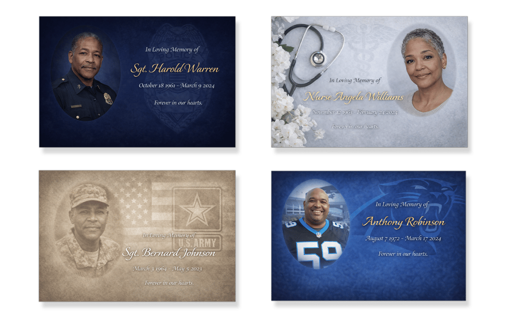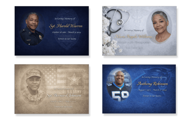 Choose from a range of beautifully designed backgrounds to set the tone of your tribute. Each option is thoughtfully crafted to honor your loved one with grace and care.
